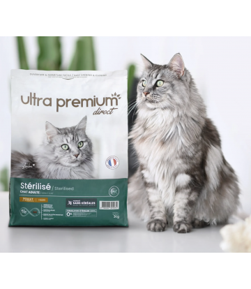 Nos croquettes Light pour chat stérilisé ou d’intérieur ont été spécialement conçues pour s’adapter à leur métabolisme spécifique. Le chat stérilisé gagne souvent en appétit malgré une activité moins importante et des besoins énergétiques en baisse. Ils sont plus enclins à prendre du poids et leur alimentation doit être soigneusement surveillée pour éviter l'embonpoint et les risques de pathologies qui y sont liées. Les croquettes chats stérilisés Ultra Premium Direct ont un apport limité en matières grasses (15%) afin de permettre un maintien du poids de forme de votre chat.