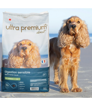 Nos croquettes Super Premium à l'agneau et au riz offrent à votre chien une alimentation équilibrée, complète et digeste : l'agneau est une protéine de grande qualité, le riz est facile à digérer et la recette a un apport en calories modéré.