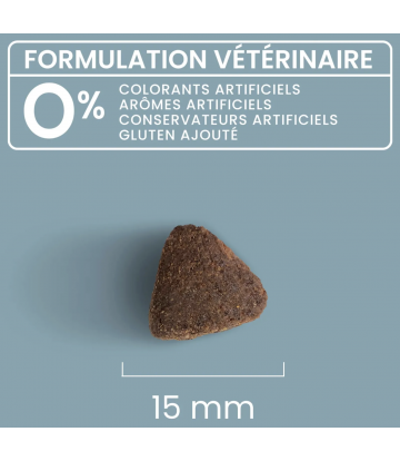 La dimension moyenne de la croquette convient au plus grand nombre de chiens, quelle que soit leur race ou leur taille.