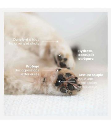Notre baume est idéal pour protéger, hydrater et réparer la truffe et les coussinets de votre chien ou de votre chat. Été comme hiver, il protège la peau de votre animal des intempéries et soulage les fissures, gerçures et crevasses. Ce produit nourrissant et apaisant est un indispensable pour prendre soin de votre animal au quotidien.
