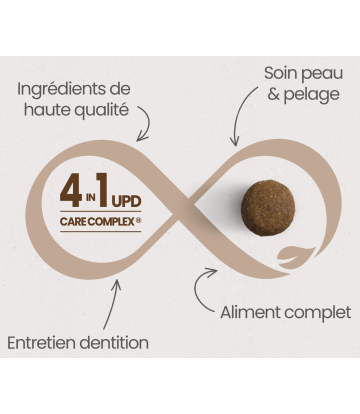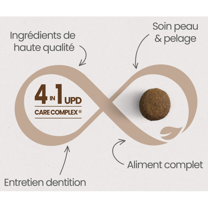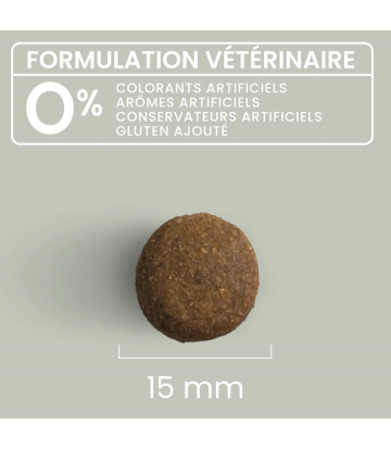 Nos croquettes, fabriquées sans céréales, contiennent des ingrédients naturels et fonctionnels aux nombreuses vertus :